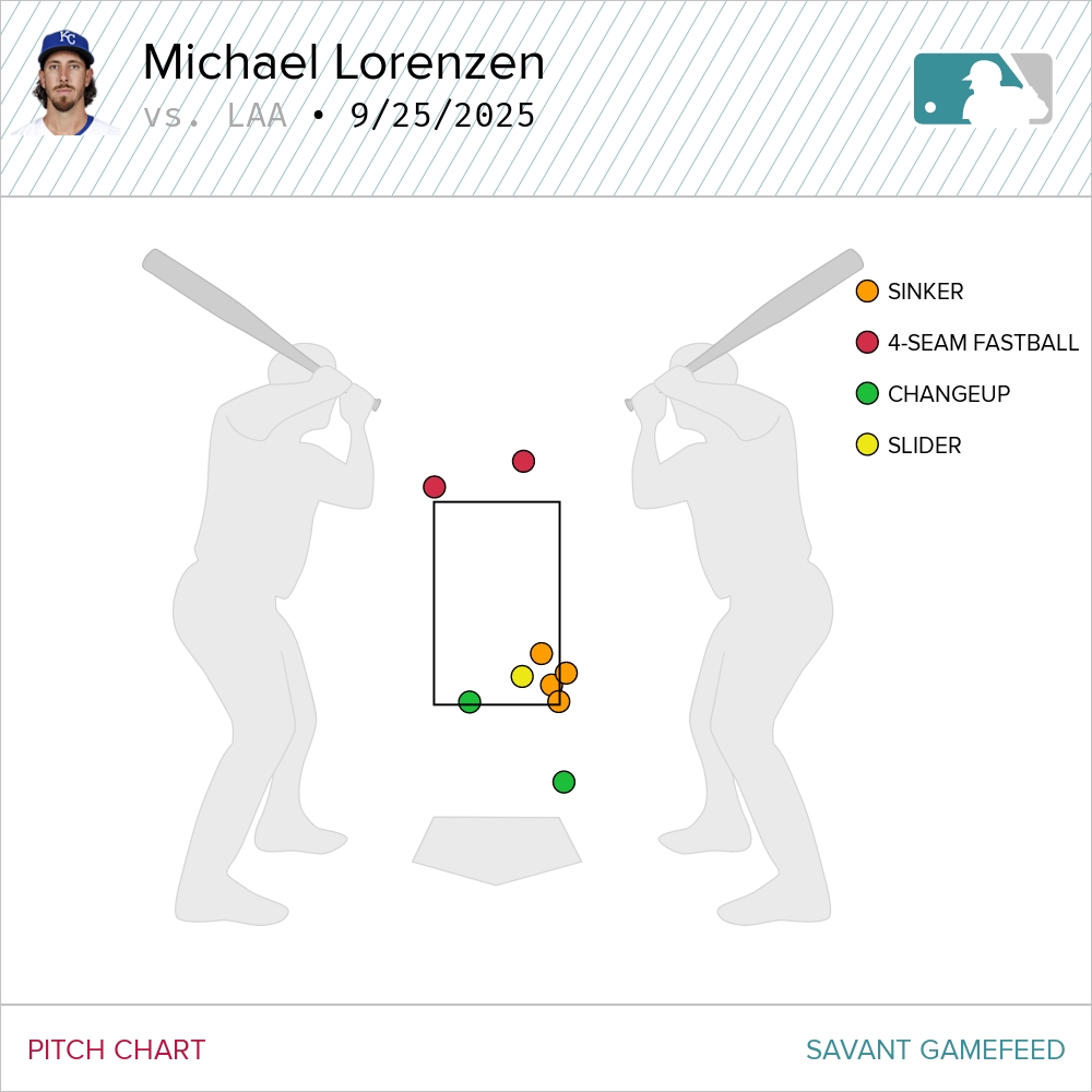 In 2025 for the Royals, Lorenzen made 26 starts, throwing 141.2 innings with a 4.64 ERA and 4.67 xERA. That’s kind of amazing those two numbers were so close, given the volume of innings. Lorenzen also struck out 21 percent of batters he faced, his highest rate since 2020 when he whiffed 24 percent.