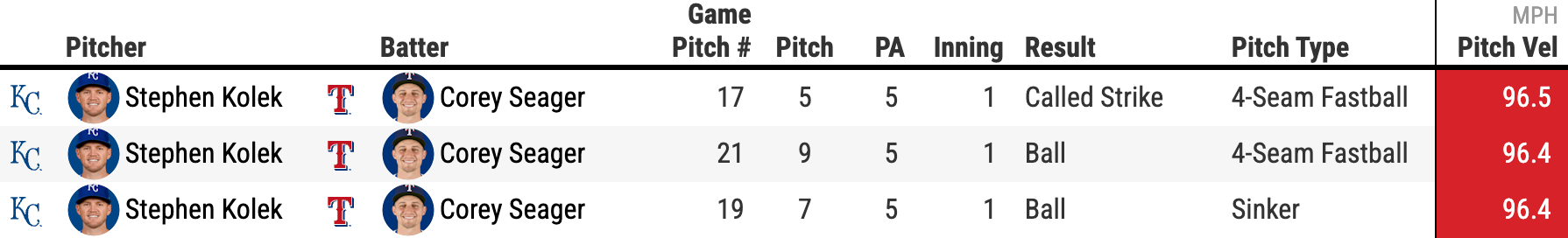 Do you want to know how often Kolek topped 96 mph last year? Of course you do! Twice. He topped 96 mph twice. Actually, that's not entirely accurate. He hit 96 mph twice in 2025.
