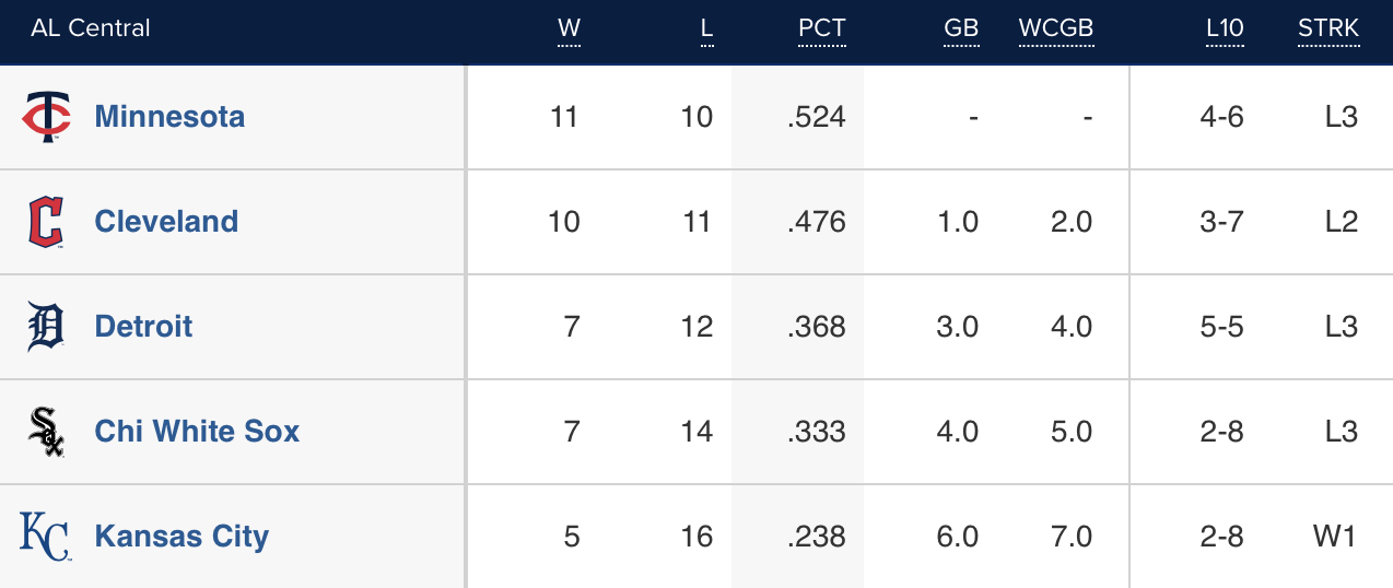 For the last couple of years, I’ve done a semi-regular feature in my newsletters where I would recap games in the AL Central. Kind of a check-in on the division. I haven’t done it yet this year because it kind of feels…irrelevant. But maybe I should because, wow…this division is extra bad this month.