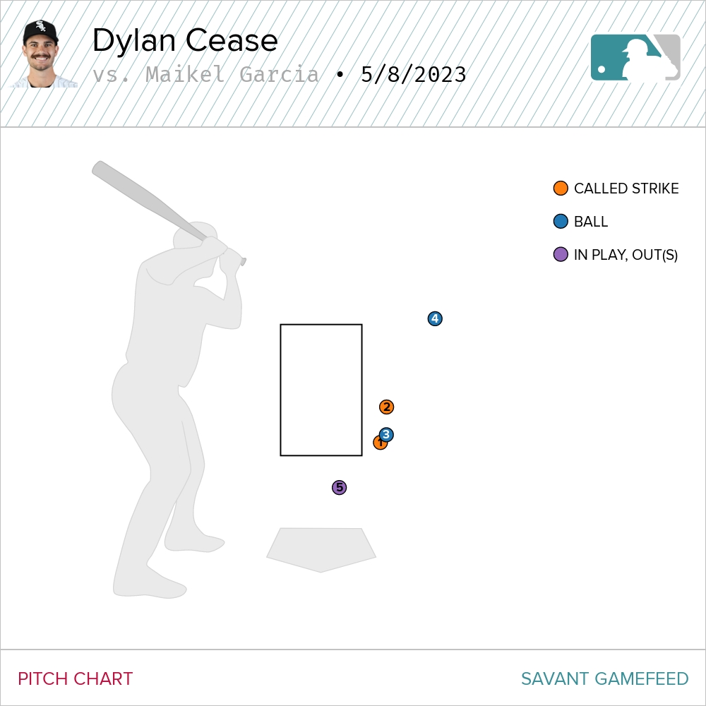 The good news is, except for one pitch in the zone that Garcia bunted foul, Cease couldn’t even accept that gift. Garcia walked and manager Pedro Grifol went to his bullpen.