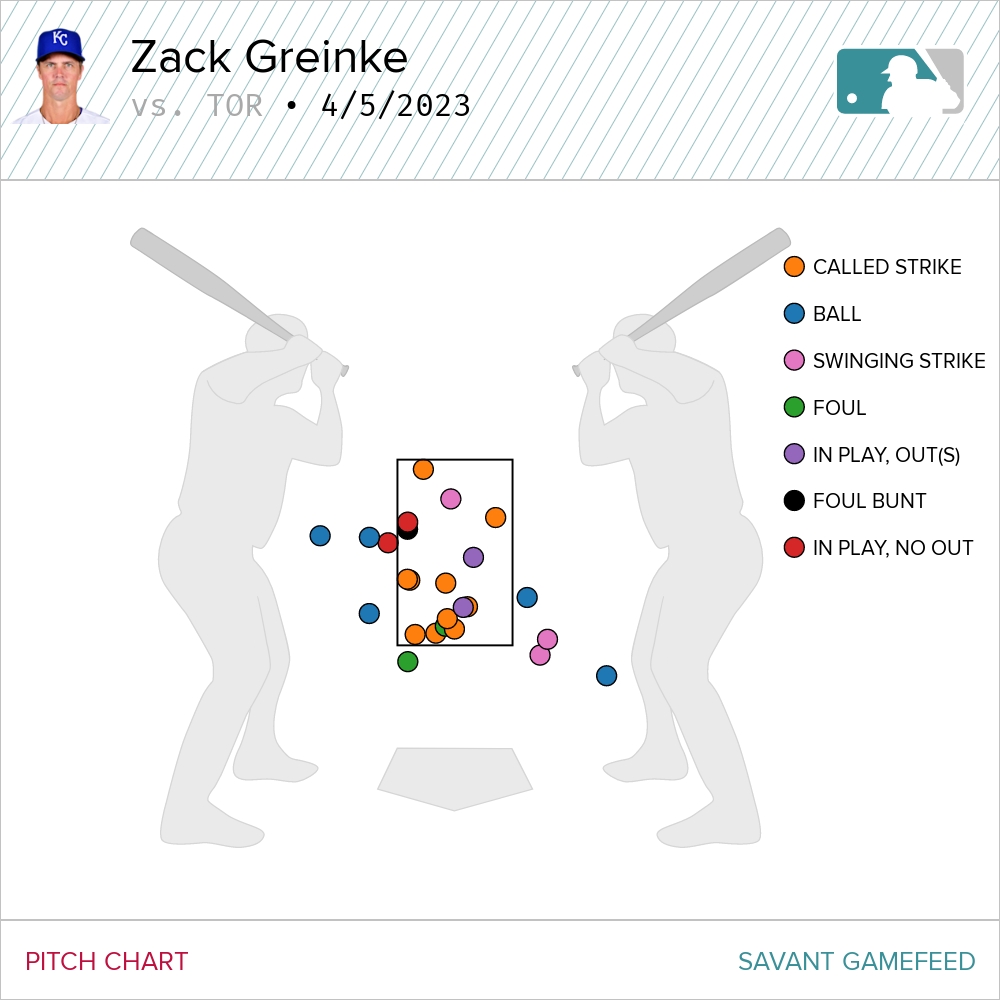 You’ll recall from earlier Wednesday that in Greinke’s first start of ‘23, he threw a first-pitch strike 65 percent of the time. That was right in line with his rate last season and what he’s done throughout his career. In his start on Wednesday, he was even better, offering a first-pitch strike 80 percent of the time. Eighty percent!
