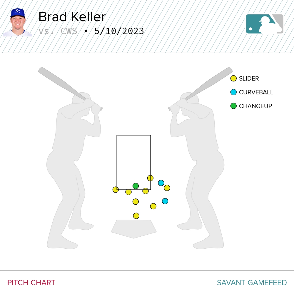 Take what the opposition provides I guess. Keller picked up a couple of swings and misses on the curve, but continued the trend of not throwing that particular pitch as frequently as he had earlier in the season. He threw just eight curves of his 88 pitches on Wednesday, relying on his usual slider/sinker combo.