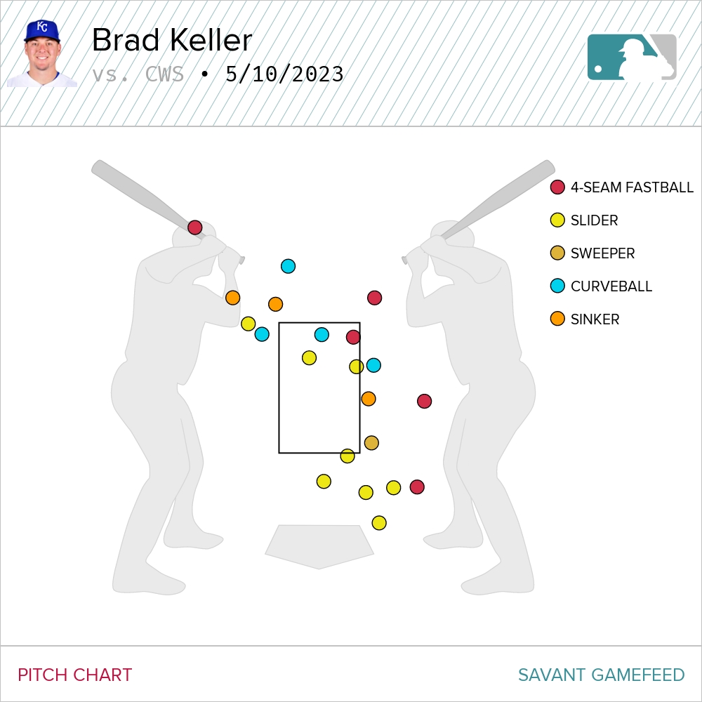 Keller found a bit of a groove in the later innings and truthfully never felt like he was in danger, but that was largely thanks to the aggressive approach of the Sox hitters. These were the swinging strikes Keller threw. Most were with fewer than two strikes.