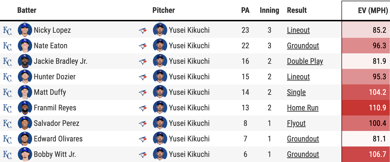 This was the Royals’ exit velocity the first time through the order.