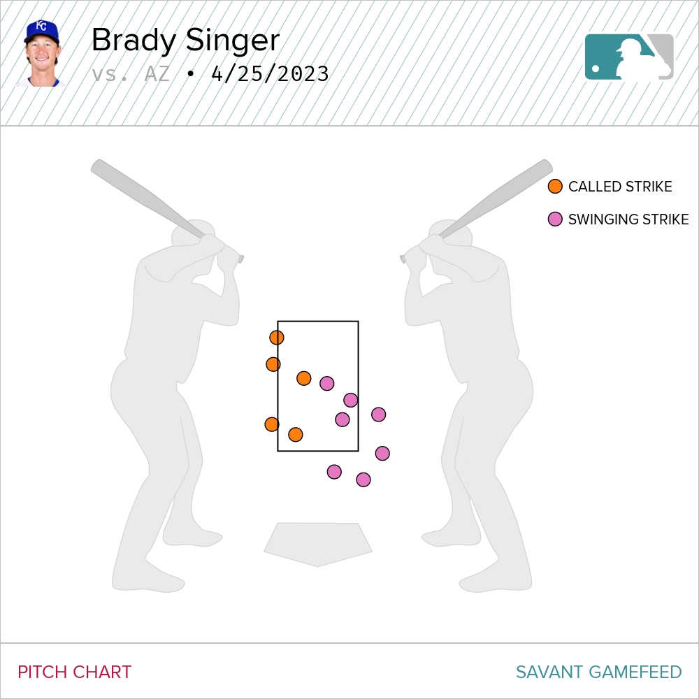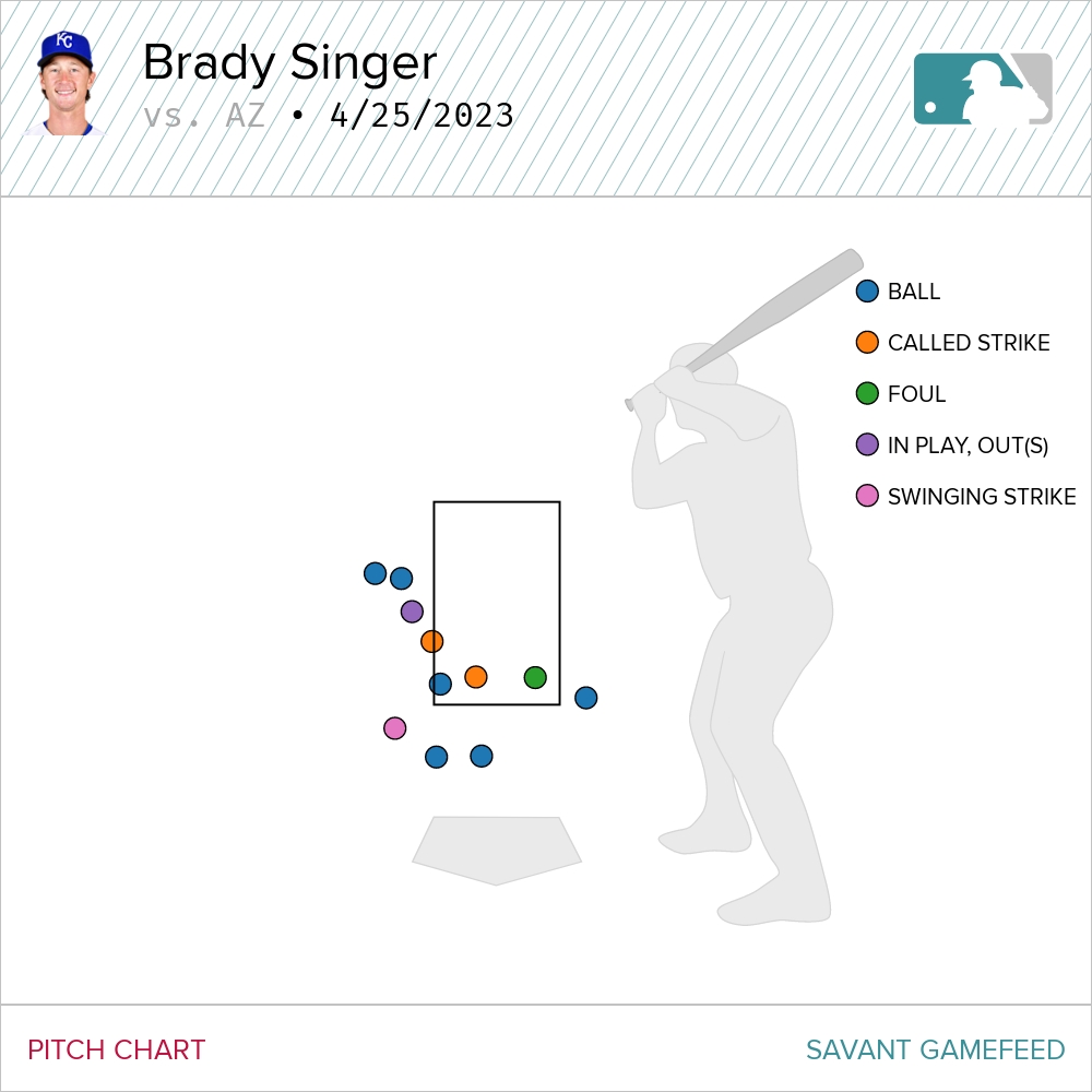 The Singer cambio made an early appearance on the evening, with the right-hander showing it to each of the first three batters he faced in the first. It was immediately much more than a show-me pitch as two of them were thrown for strikes. In fact, the change was an incredibly effective pitch on the evening for Singer against left-handed batters. He threw 11 of them and recorded a handful of strikes with it.