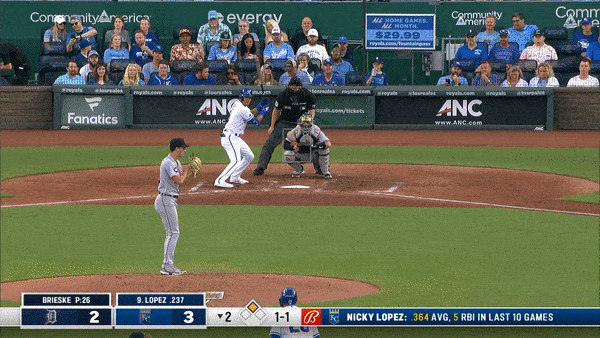 To set the scene, the Royals were knocking around Detroit starter Beau Brieske. Of the first three batters who put the ball in play, three of them hit it with an exit velocity greater than 102 MPH. All three of those went for extra bases. Throw in another single and the Royals jumped to an early 3-2 lead.