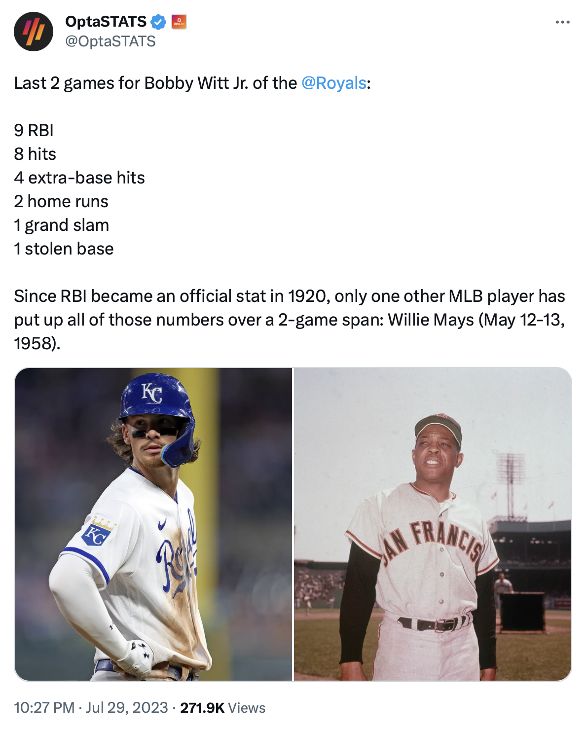 On Saturday, Witt added three more hits after that dinger, including a triple. He finished with two runs scored and three RBIs. It was two days that had almost never been seen in the majors before. Is that hyperbole? Nah. More like insanity.
